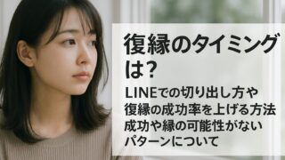 「復縁のタイミングが分からない」「いつLINEすればいい?」「復縁できる可能性はある?」検索する多くの人が、今が動くべき時なのか、自分から連絡して良いのかを迷っています。復縁はタイミング次第で成功率が大きく変わるため、冷却期間・LINEで切...